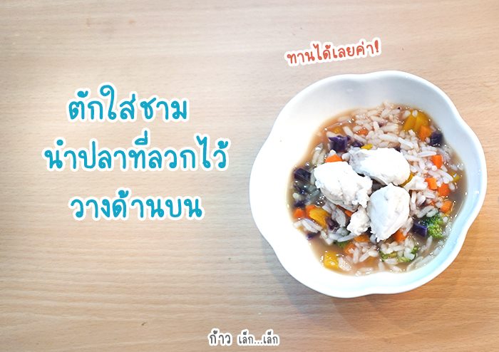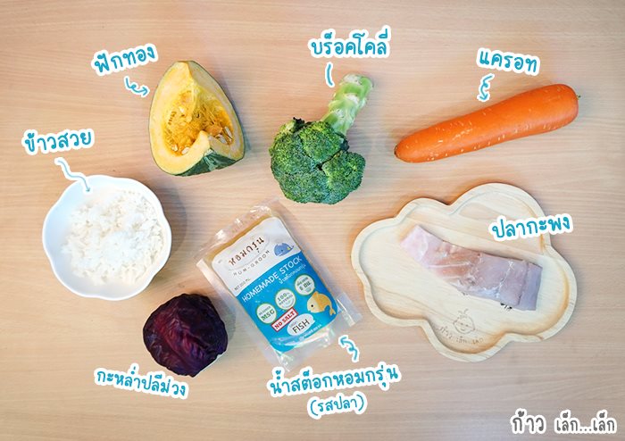 – ปลากะพง 1 ชิ้น (อายุต่ำกว่า 1 ขวบ ใช้เป็นปลากะพงน้ำจืดนะคะ)