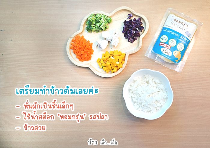 พอลวกปลาเสร็จแล้วก็มาเตรียมทำข้าวต้มกันเลยค่ะ