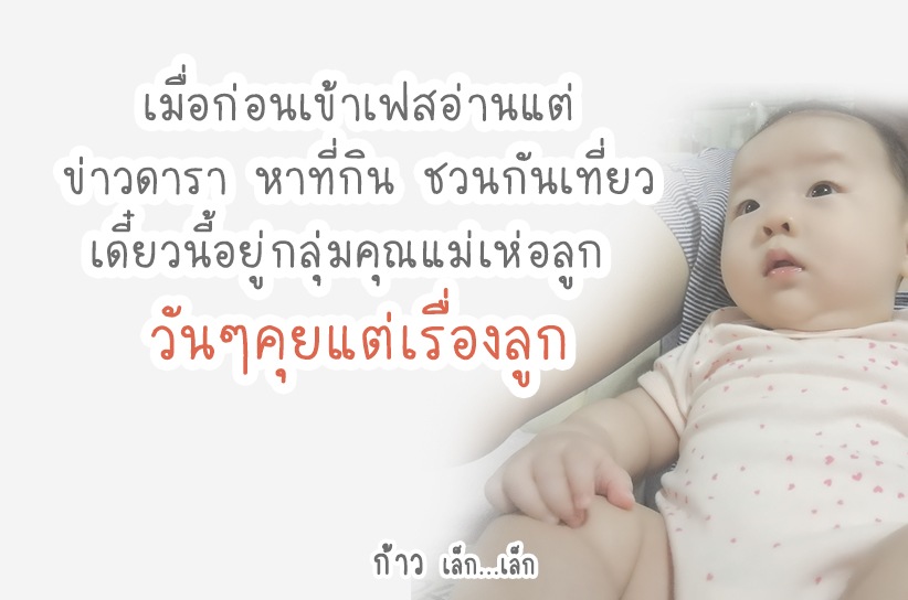 เมื่อก่อนเข้าเฟสอ่านแต่ ข่าวดารา หาที่กิน ชวนกันเที่ยว เดี๋ยวนี้อยู่กลุ่มคุณแม่เห่อลูก วันๆคุยแต่เรื่องลูก